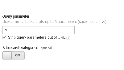 Selecting site search tracking will open a new field prompting you to input your website’s search query parameter.  A query parameter is simply a part of your URL that helps to define actions or behaviour of the information being submitted.